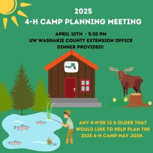 Any 4-H member 13 and older that would like to help plan 2025 4-H Camp may join! Dinner will be provided see you all on April 10th at the Washakie County Extension Office!