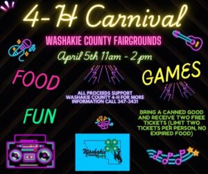Mark your calendars and join the fun for our 4-H Carnival on April 5th from 11 am – 2 pm