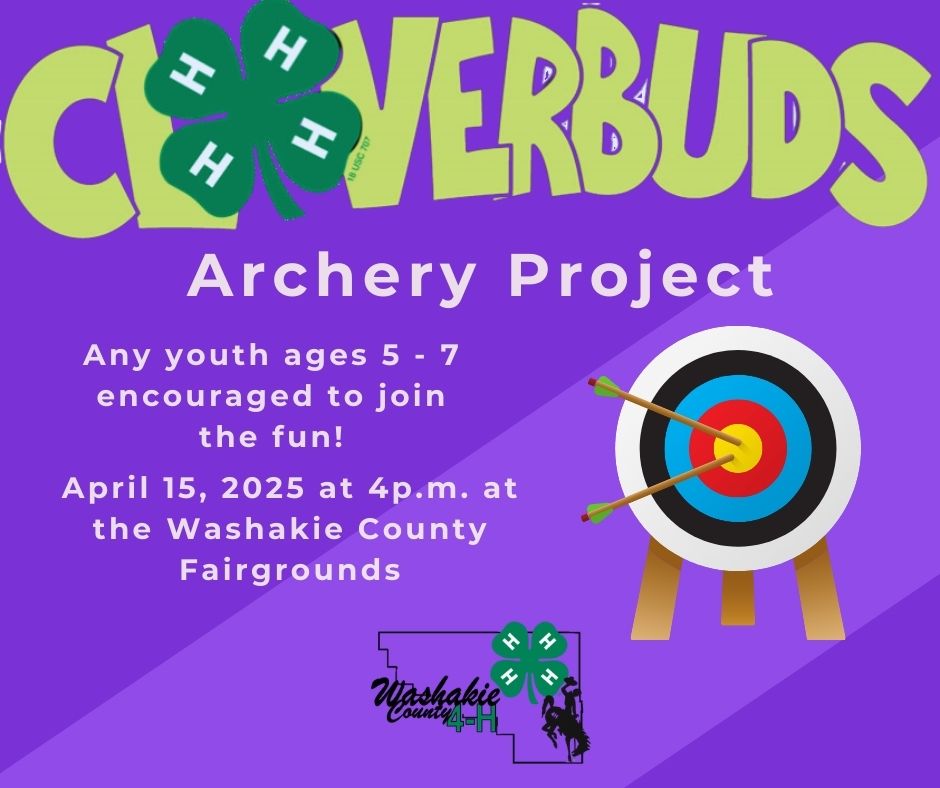 Any youth ages 5 – 7 encouraged to join the fun!  Join us for the Archery Project at the Washakie County Fairgrounds!