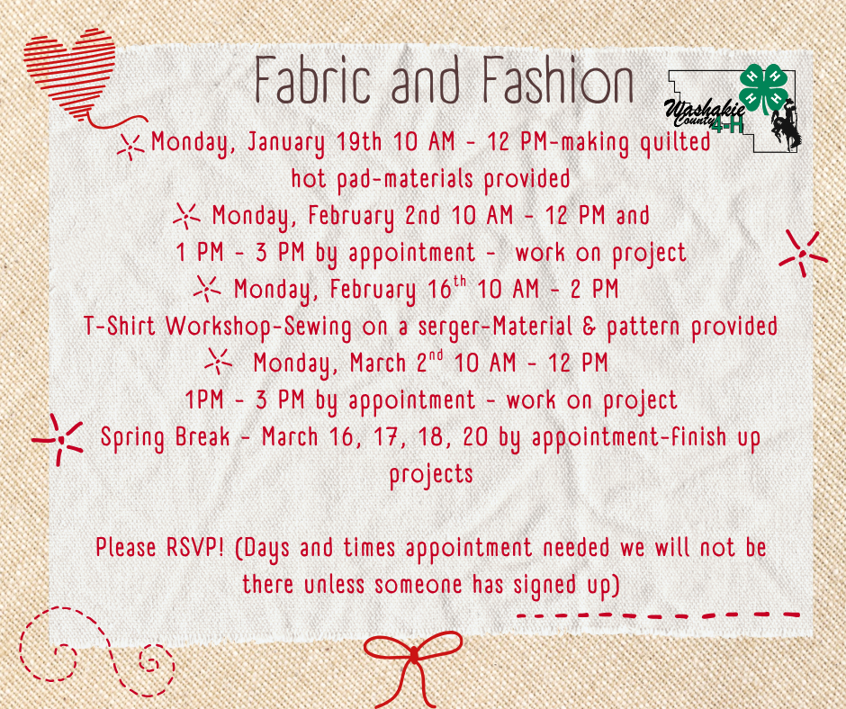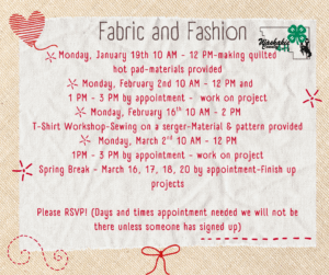Save the dates for the Fabric and Fashion meetings!