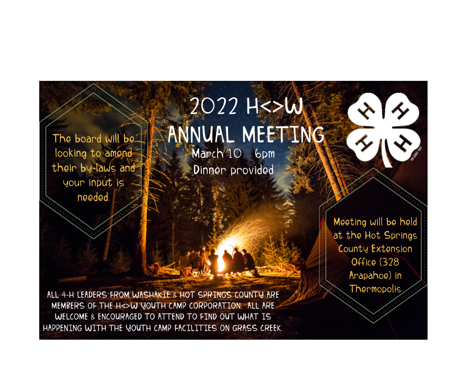 ALL 4-H leaders are part of this corporation and invited to attend! The H<>W Board is doing great things, join them and learn more!