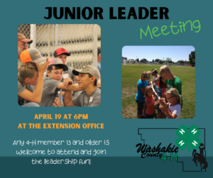 Junior leader meeting April 19 at 6PM.