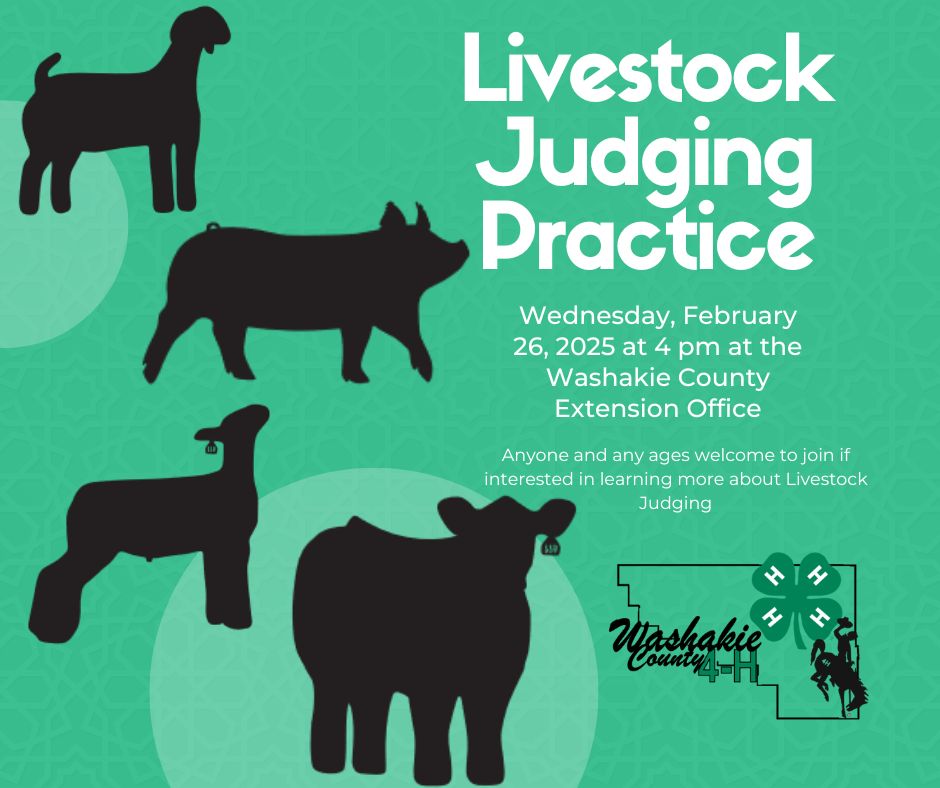 Join us on February 26, 2025 at 4 p.m. for Livestock Judging Practice at the Washakie Extension Office, any one any age welcome to attend!