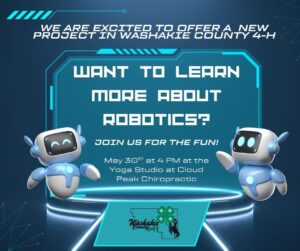 We are excited to be able to offer Robotics in Washakie County 4-H now! Come join us for some fun to learn more about Robotics on May 30th at 4 PM in the Yoga Studio at Cloud Peak Chiropractic!