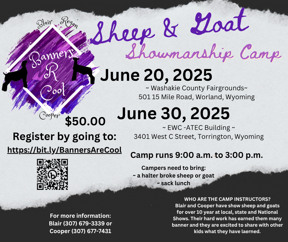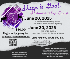 Get signed up today for the Sheep and Goat Showmanship Camp! June 20 at the Washakie County Fairgrounds from 9 am – 3 pm!