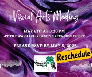 Visual Arts has been rescheduled to May 6, 2025 at 3:30 PM at the Washakie County Extension Office!