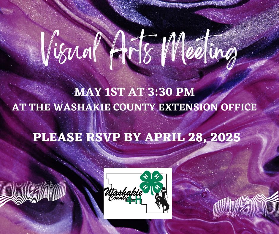 The next Visual Arts Project Meeting will be on May 1, 2025 at 3:30 PM at the Washakie County Extension Office!