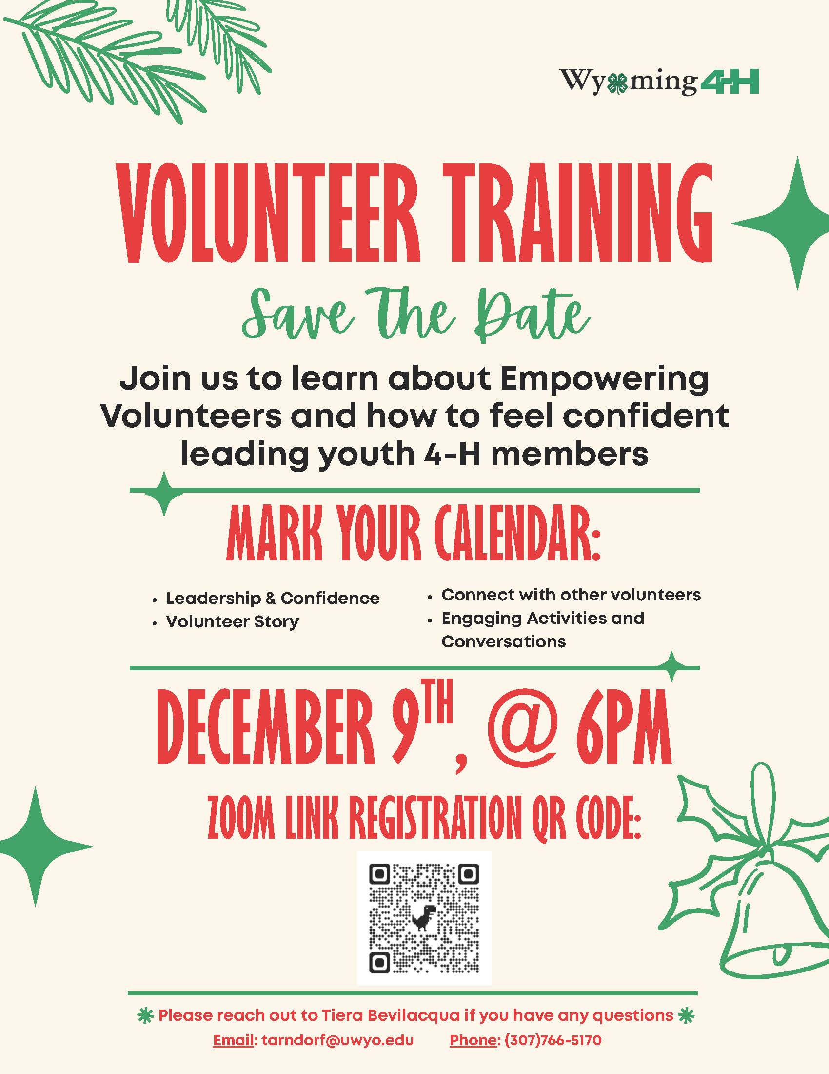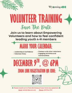 Mark your calendar for Volunteer Training on December 9th @ 6PM via zoom!