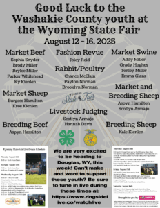 Good Luck to all the Washakie County youth at Wyoming State Fair August 12 – August 16th!