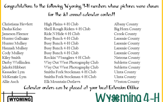 Congratulations Alli Auch for being one of the photographers chosen for the Wyoming 4-H Calendar!! Be sure to order you 2017 Wyoming 4-H Calendar! They make a great holiday gift. Contact the UW West... Read More- 3 of 3